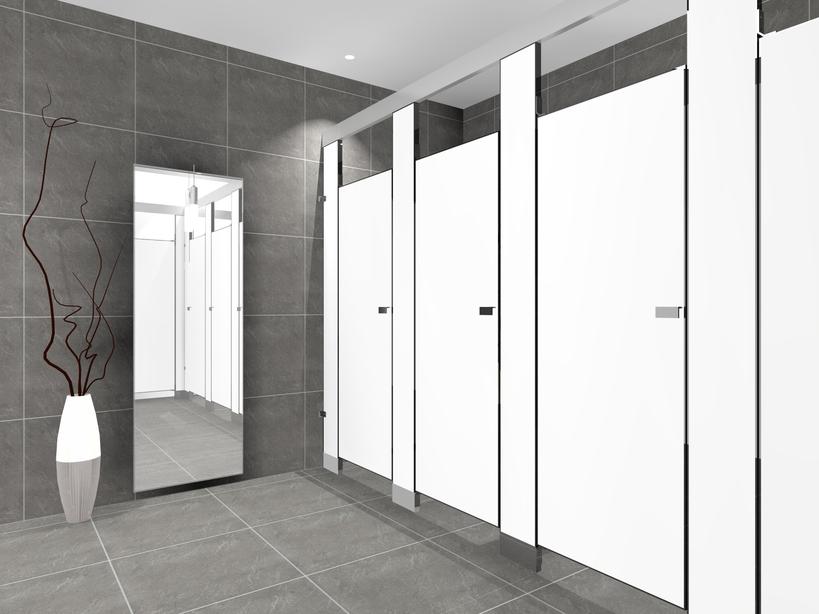 Model with a floor mounted pilasters 70 ¾ and 66 ½ height panels and doors, that gives an extra privacy. SANILOCK™’s anchor design gives a strong and solid assembly on any installation sites.