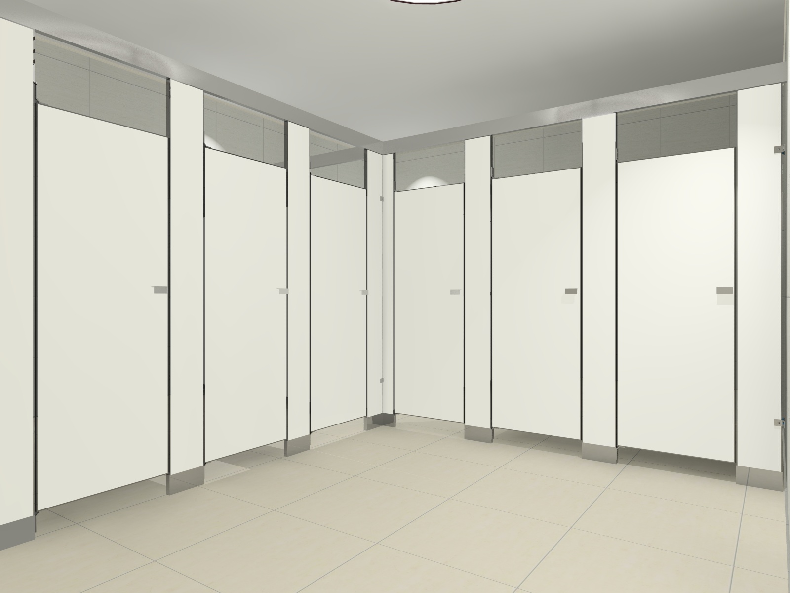 The model incorporates floor-mounted pilasters with an overhead brace, along with panels and doors that have a height of 66 1⁄2 inches. This combination of features provides an enhanced level of privacy for users. The floor-mounted pilasters, reinforced by the overhead brace, ensure a sturdy and reliable installation. SANILOCK™'s anchor design further strengthens the assembly, guaranteeing its durability and stability in any installation site. Whether it's a restroom in a commercial building, a public facility, or an educational institution, this model offers a robust solution that can withstand the demands of various environments. The height of the panels and doors contributes to a greater sense of privacy within the restroom partitions. By extending the height, these elements create a more enclosed space, shielding users from unwanted visibility and distractions. This added privacy is particularly important in settings where discretion and comfort are valued, such as offices, healthcare facilities, or public restrooms that prioritize user well-being. Furthermore, the model's design not only prioritizes privacy but also exhibits a visually pleasing aesthetic. The combination of the floor-mounted pilasters, overhead brace, and taller panels and doors creates a modern and sophisticated look. The clean lines and well-structured design contribute to an overall pleasing ambiance in the restroom area. In summary, the model with floor-mounted pilasters, overhead brace, and 66 1⁄2 inch height panels and doors offers an exceptional solution for enhancing privacy in restrooms. With its robust construction and secure anchor design, it is suitable for installation in a wide range of locations. The heightened privacy and attractive design make it a desirable choice for creating comfortable and visually appealing restroom spaces.